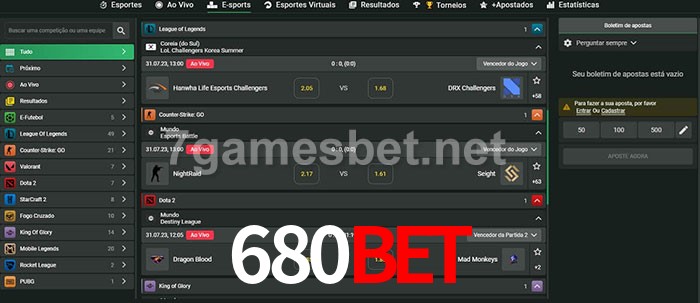 O 680Bet oferece uma grande seleção de opções de apostas em e-sports com probabilidades competitivas